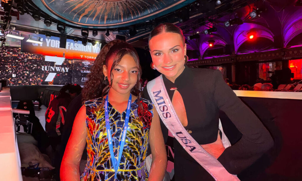 But every so often, a moment cuts through all of that. A youth model walks the Runway7 stage for Archie Brown, then turns around and interviews Miss USA with the calm confidence of a seasoned journalist. The cameras click. The crowd watches. And something real happens.